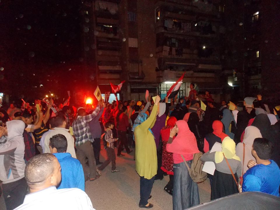 ردد المتظاهرون هتافات تندد بالحالة المأساوية التي يعيشها المعتقلين، مطالبين بالإفراج عنهم، كما رددوا هتافات تندد بسوء الحالة المعيشية والاقتصادية، فيما حملوا شارات رابعة، وأعلام مصر.