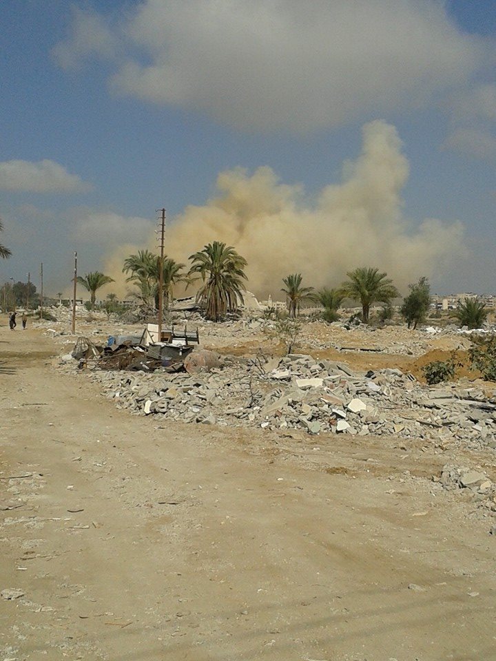 حيث قامت قوات الجيش المصري بتفجير نحو 12 عمارة سكنية، مكونة من 5 طوابق، ومملوكة لعائلة القمبز، والكائنة بحي صلاح الدين في رفح، بالأمس.