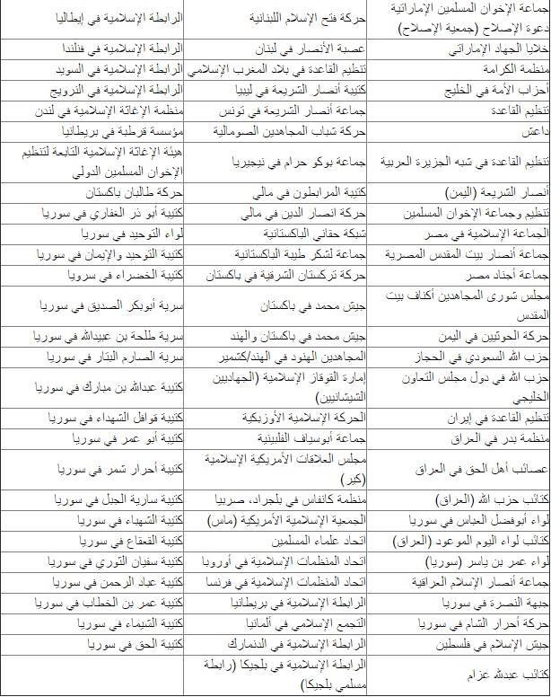 وقالت صحيفة "الاتحاد" الإماراتية إن "الإخوان و"داعش" والقاعدة والحوثيون والنصرة وأحرار الشام أبرز المحظورين".