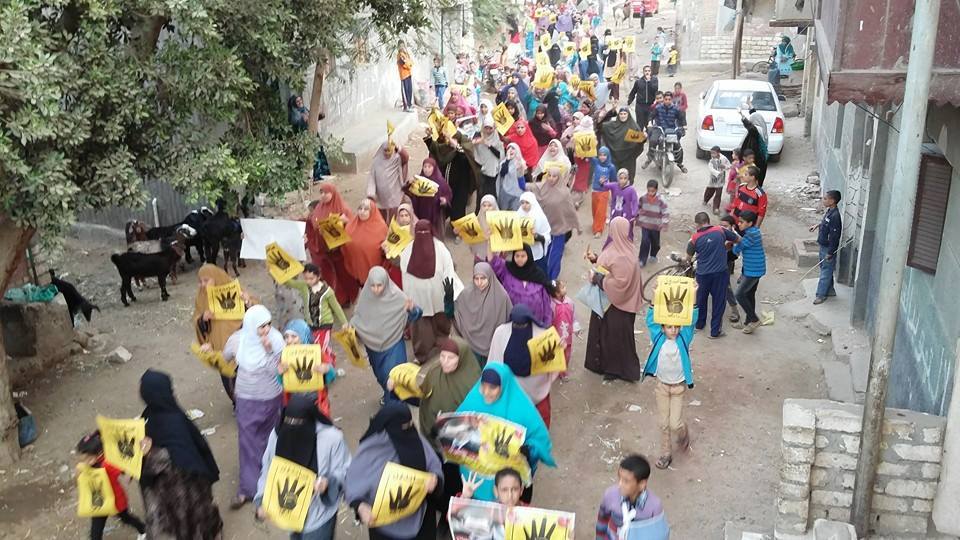 كما حملت المشاركات شارات رابعة، وصورًا للمعتقلين، مطالبين بالإفراج عنهم، كما طالبن بالقصاص لدماء الشهداء، وأكدن على استمرارهن في التظاهر السلمي حتى إسقاط الانقلاب.