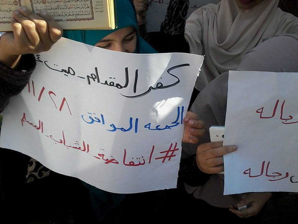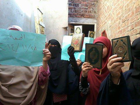 كما نظمت حركة "نساء ضد الانقلاب" بقرية ‫‏البجلات‬ مركز "منية النصر"، وقفة رمزية بالمصاحف رددنّ فيها هتافات تطالب برحيل حكم العسكر، وعودة الشرعية كاملة، كما نددوا بمحاولات الإعلام المصري تشوية الإسلاميين، ووصفهم بالإرهاب.