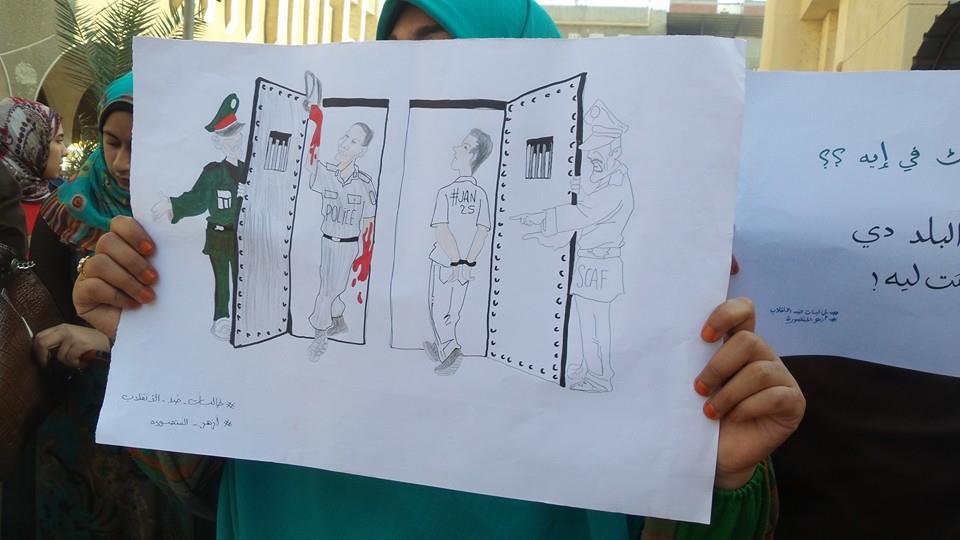 حيث تجمعت الطالبات صباح اليوم في سلسلة بشرية في ساحة الكلية، مرددين هتافات منددة بقضاء الانقلاب، فيما تحركت الطالبات في مسيرة جابت أرجاء الكلية وجابت كذلك مباني الكلية الرئيسة.
