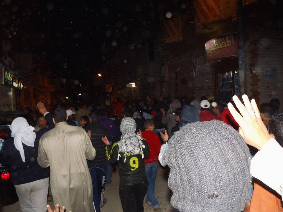 انطلقت المسيرة من أمام مسجد عرابي لتطوف شوارع المدينة، حيث ردد المشاركون فيها هتافات مناوئة لداخلية الانقلاب، ورفعوا رايات رابعة، وصور الرئيس محمد مرسي، كما حملوا لافتات منددة باعتقال المعارضين، وتلفيق الأحكام وتبرئة القتلة.