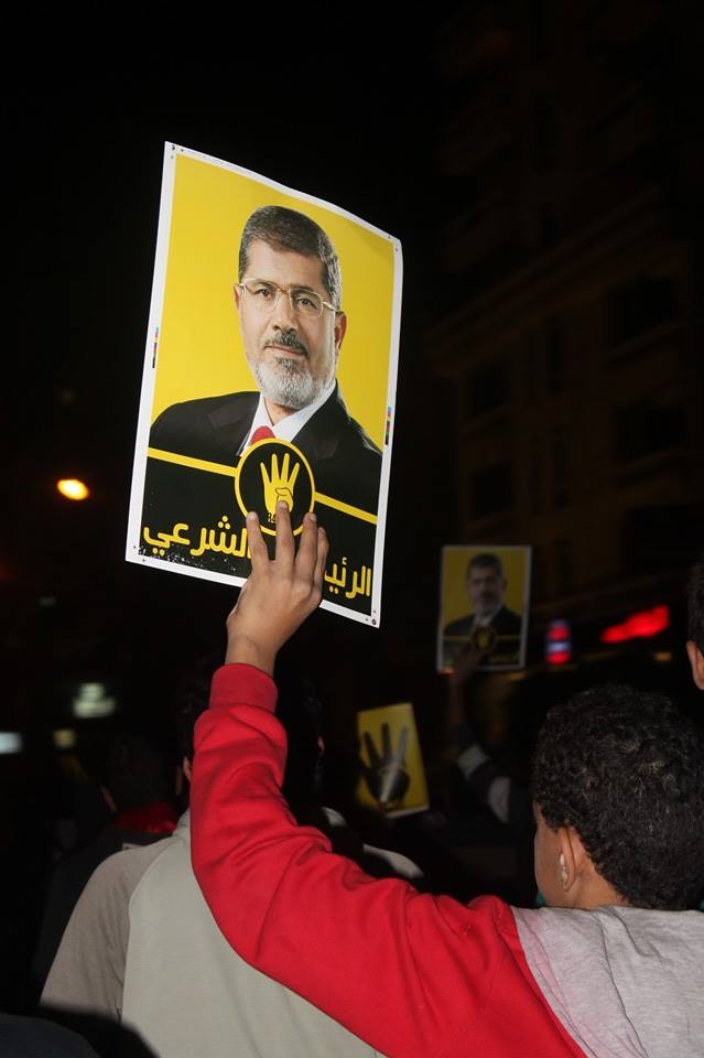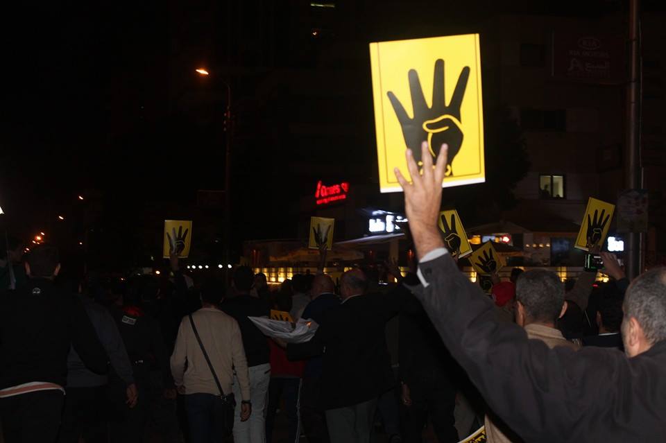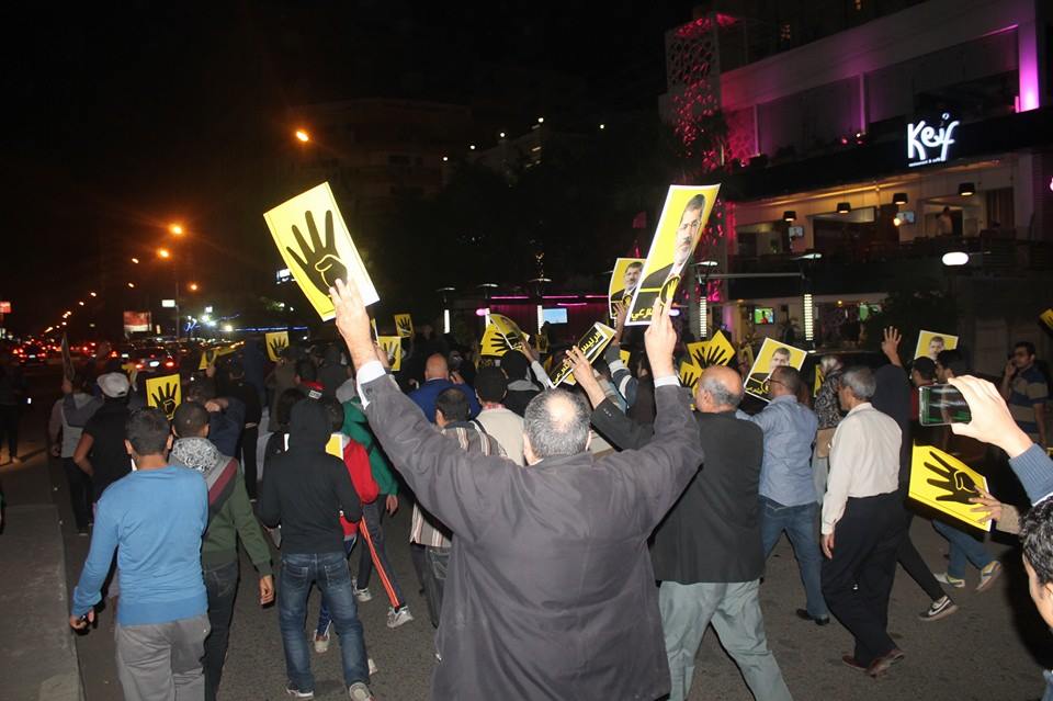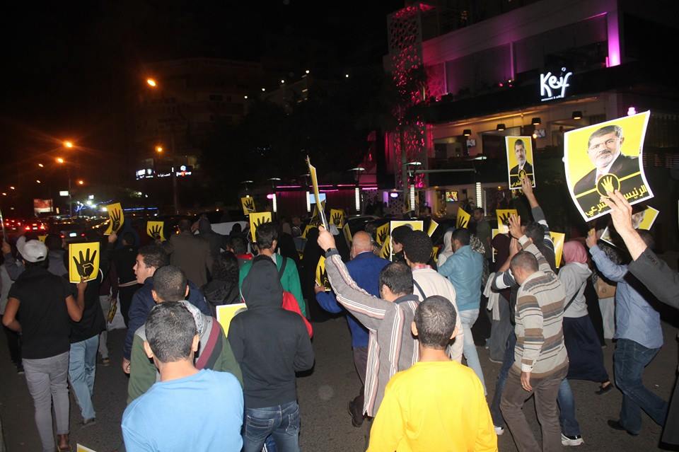 حمل المشاركون شارات رابعة، كما حملوا صورًا للرئيس محمد مرسي، مطالبين بعودته، فيما نددوا ببراءة المخلوع مبارك، كما طالبوا بإسقاط الانقلاب العسكري، مؤكدين على استمرارهم في التظاهر السلمي حتى إسقاط الانقلاب.