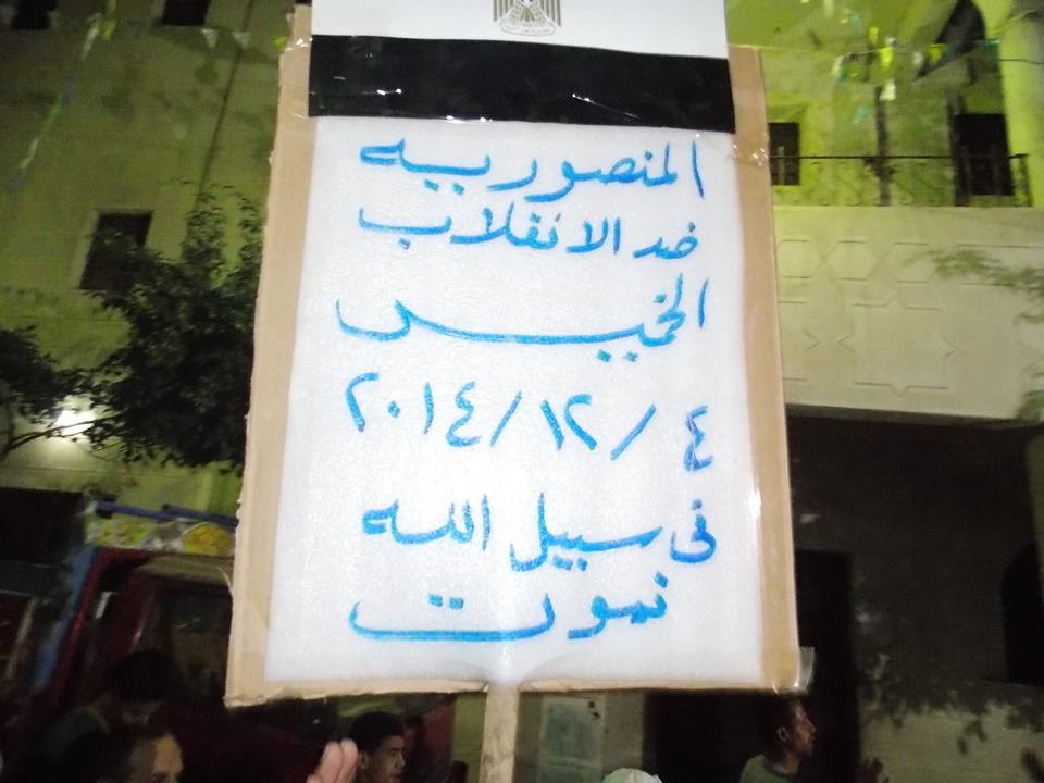 نظم أهالي المنصورية  في الجيزة، مسيرة ليلية حاشدة خرجت من أمام مسجد حمد، بعد صلاة العشاء، وطافت الشوارع الرئيسية بالمنصورية؛ وذلك رفضًا لأحكام الإعدام الصادرة بحق 188 من أبناء كرداسة، واحتجاجًا على الحملات الأمنية المتكررة على المنطقة.