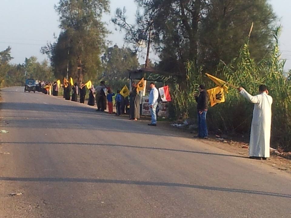 نظم رافضو الانقلاب العسكري في "العجوزين" التابعة لمركز "دسوق" بـ"كفرالشيخ"، سلسلة بشرية على طريق "دسوق – كفرالشيخ"، للتنديد بتردي الأوضاع المعيشية، وغلاء الأسعار، ولاقت السلسلة تفاعل المارة وأصحاب السيارات.