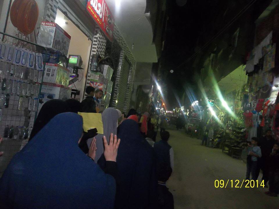 نظمت حركة "نساء ضد الانقلاب" بالقليوبية، وقفة نسائية مساء اليوم بعرب العيايدة التابعة لمركز الخانكة، حملن خلالها لافتات تطالب بحرية المعتقلات في سجون العسكر، كما طالبن بالإفراج عن المعتقلة "إيمان فكري" من أبو زعبل بالقليوبية.