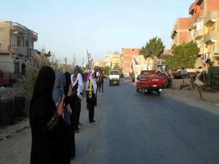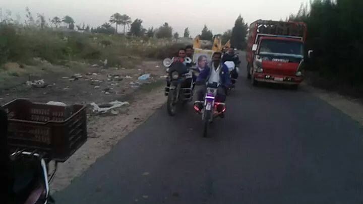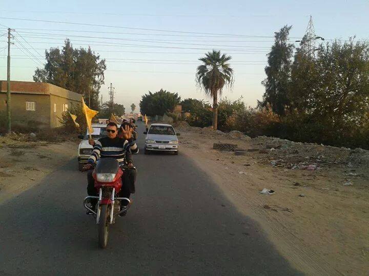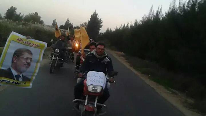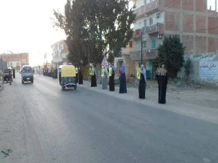 جاءت السلسلة الأولى على طريق "أبو المطامير- جناكليس"، والثانية على طريق "أبو المطامير- كفر الدوار"، رافعين صورًا للرئيس "مرسي"، وشارات رابعة، وكذلك أعلام مصر.