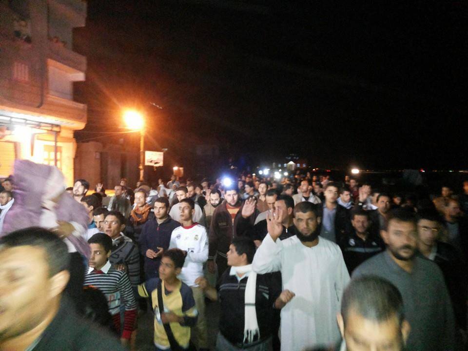 خرج أهالي "بلطيم" بكفرالشيخ، في مسيرة ليلية حاشدة، تنديدًا بممارسات داخلية الانقلاب، والتعامل القمعي مع تظاهرة سلمية لهم الجمعة الماضية، والتي أسفرت عن إصابة العشرات، وارتقاء الشهيد "عبده شرابي"، بعد إصابته برصاص من الظابط "محمد عماد" رئيس مباحث بلطيم.