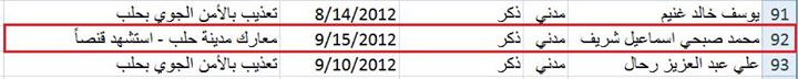 قتل النظام أبا حازم قنصًا في حلب بتاريخ 15 – 9 – 2012 ودون اسمه في سجل شهداء تفتناز كما هو مرفق وذلك بعد أن أخبر أحد أقاربه بعد ثلاثة أيام من تاريخ استشهاده.