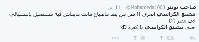بينما علق آخر: "انا متأكد إن الإخوان ورا حريق مصنع الكراسي، أكيد زهقوا من كتر ما اتاخذوا وراه فقرروا يُخلصوا منه".