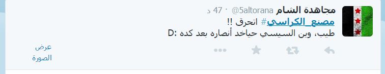 وقالت مغردة باسم "مجاهدة شامية" عبر الهاشتاج "مصنع_الكراسي اتحرق!!طيب، وين السيسي حياخد أنصاره بعد كده J".