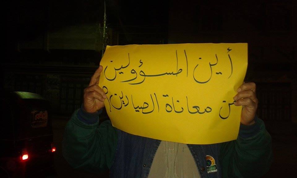 حيث نددوا بتجاهل المسؤلين للحادث، فيما حملوا لافتات تحمل وزير داخلية الانقلاب المسؤلية عن مقتل الصيادين، وكذلك نددوا بالتقاعس في انتشال الصيادين قبل غرقهم، كما نددوا بالفساد في بحيرة المنزلة، والذي اضطر الصيادين للذهاب للبحر الأحمر.
