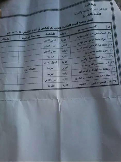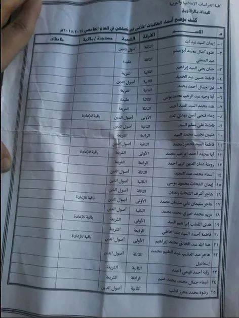 وننشر لكم أسماء الطالبات المفصولات تبعًا للاسم والفرقة وشعبة التخصص: