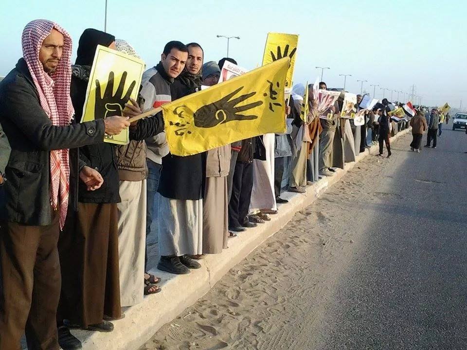 وفي مدينة منيا القمح نظم معارضو الانقلاب صباح اليوم سلسلة بشرية على جانبي الطريق منيا القمح – بلبيس ضمن فعاليات أسبوع " معًا للتحرير والتطهير".