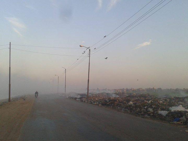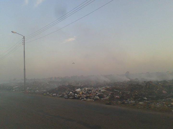 وتتصاعد ألسنة اللهب وسحب الأدخنة من أكوام القمامة، إذ يستوجب التخلص منها حرقها في الطريق العام، مما يؤدي إلى تصاعد الأدخنة ليلا ونهارًا، وحجب الرؤية عن السائقين.