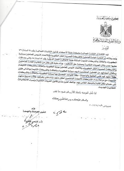 بالمستندات.. نقابة نقل الكهرباء المستقلة شرعية