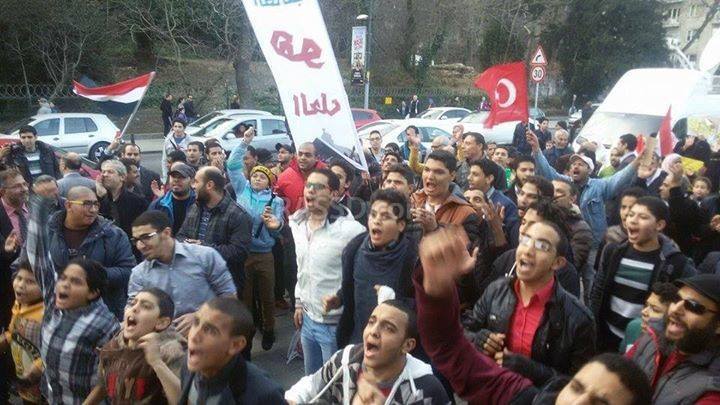 ففي تركيا، نظمت الجالية المصرية باسطنبول اليوم – الأحد – مؤتمرا ووقفة احتجاجية ضد قائد الانقلاب السيسي وحكومته أمام القنصلية المصرية باسطنبول، بعنوان (يناير من جديد).