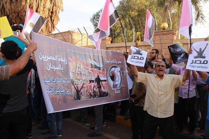 وفي السودان خرجت الجالية المصرية في تظاهرة حاشدة رافعين أعلام مصر  وشارات رابعة العدوية ومطالبين بإٍسقاط حكم العسكر والإفراج عن المعتقلين بالسجون.