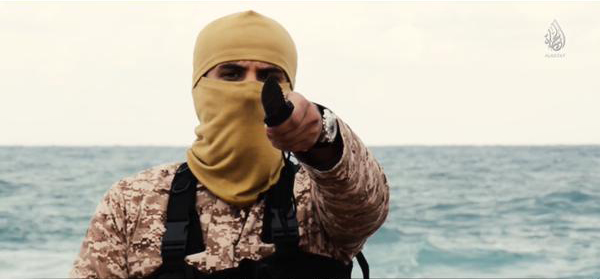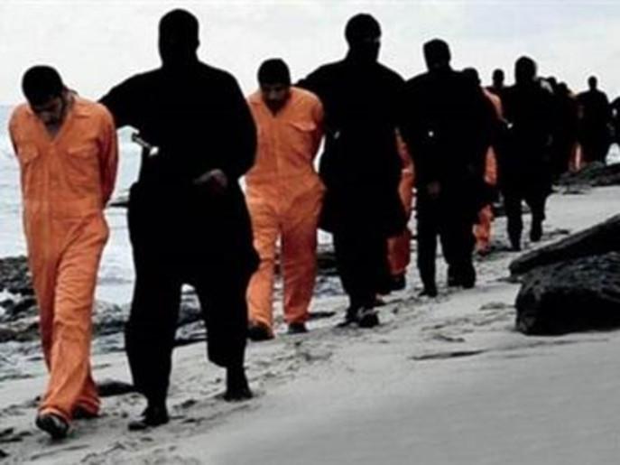 على شاطئ البحر وعلى أصوات الموج بدأ تنظيم “داعش” عرض التسجيل الخاص بمشاهد ذبح الـ 21 مصريًا المختطفين لديهم وهم يرتدون الملابس البرتقالية يسيرون بشكل منظم كأنهم صف وأيديهم مكتوفة من الخلف، ويمسك بعنق كل فرد فيهم شخص من التنظيم ملثم يرتدي زي أسود.