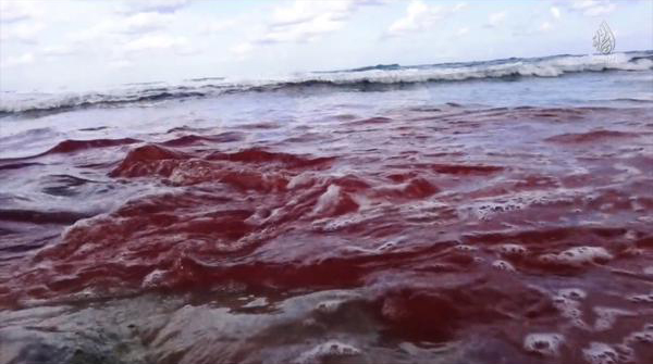 ويختتم الفيديو بمشهد لمياه البحر وقد اختلطت بدماءهم، فصار مكسوًا بالحمرة وظلت الكاميرا على تلك المياه المختلطة بالدماء حتى نهاية التسجيل.