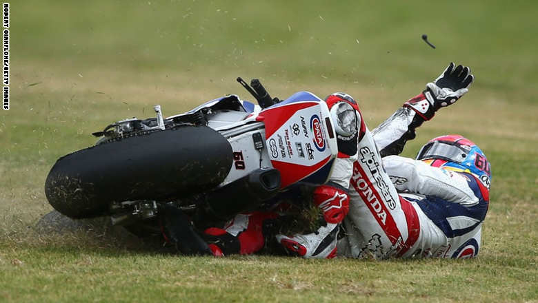 1 – مايكل فان دير مارك يسقط من على دراجته النارية في سباق “سوبر بايكز” الذي أقيم على جزيرة فيليب بأستراليا.