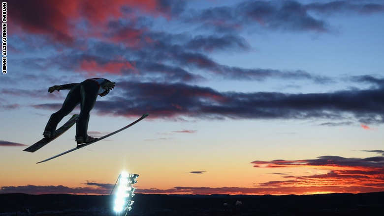 5 – المتزلج الأمريكي نيتا أنجلند يؤدي قفزة مرتفعة في بطولة نورديك العالمية للتزلج في 22 فبراير.