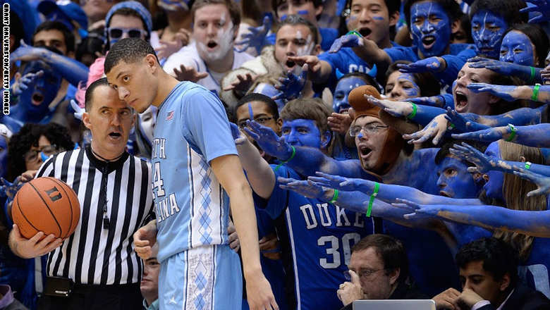 7 – مشجعو فريق “Cameron Crzies” ينادون لاعب فريق “North Carolina” قبل أدائه تمريرة من خارج الملعب، الأربعاء 18 فبراير.