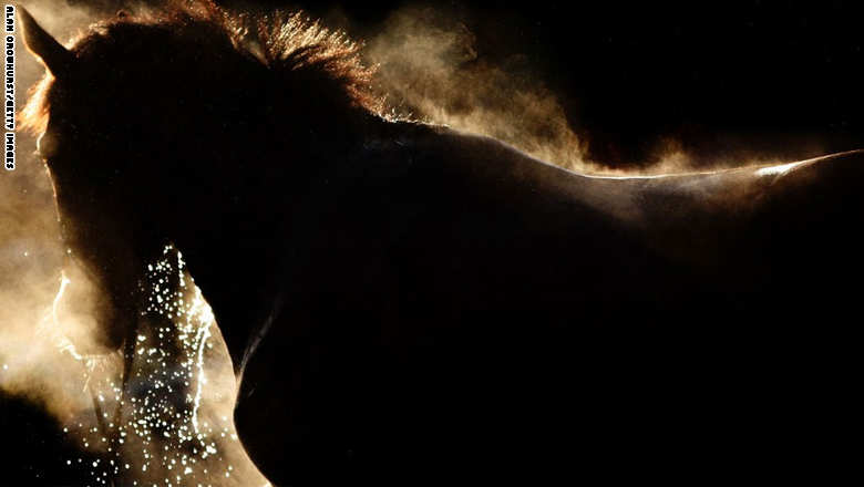 8 – بخار يتصاعد من حصان للسباق بعد رشه بالمياه في هرشام ببريطانيا بتاريخ 19 فبراير.