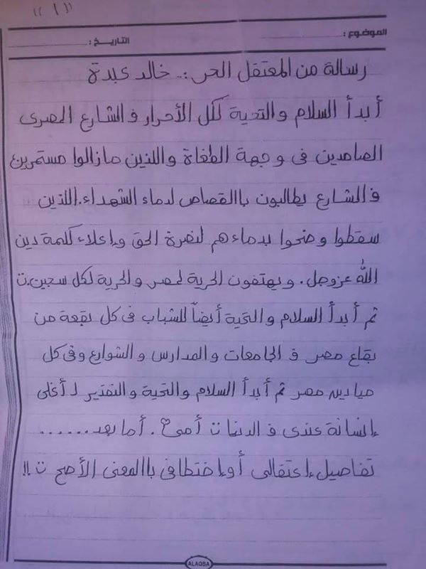بعث خالد عبدالحميد، المعتقل بمركز ميت غمر في الدقهلية، منذ 9 فبراير؛ رسالة يكشف فيها الانتهاكات التي تعرض لها لإرغامه على الإدلاء باعترافات عن وقائع لم يرتكبها.