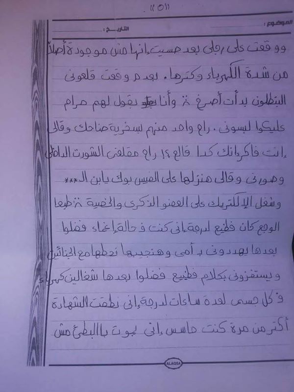 ونوه المعتقل في رسالته، إلى اضطراره الاعتراف، لشدة التعذيب الذي يتعرض له، إضافة إلى إرشاده الأمن عن أماكن زملائه، الذي تعرضوا لاحقًا للاعتقال.