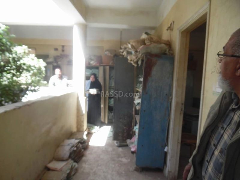 وبداخل المبنى، دفاتر وأوراق ملقاة في كل مكان لعدم وجود أرفف أو مكان، أما مكتب المدير فهو أشبه بغرفة منزل بسيطة وأنتريه لا يليق بمكتب مدير، ناهيك عن الجدران المحطمة، والأسقف التي قاربت على السقوط.