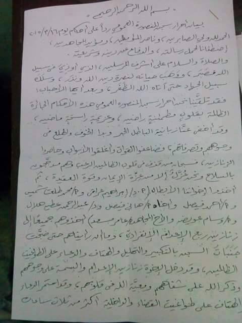 4-   دعوة الشعب المصري للانتفاضة ضد هذه الأحكام الظالمة بكل الطرق المتاحة.