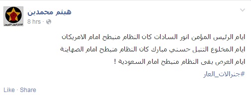 ‫وذيل "محمدين" تدوينته بهاشتاج: "#‏جنرالات_العار".