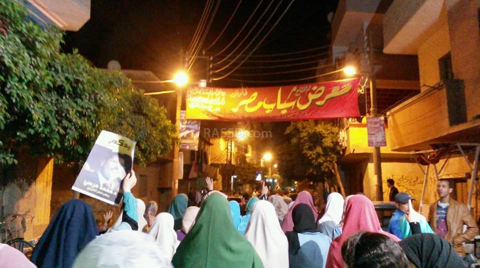 انطلقت تظاهرة من حي الجزيرة بني سويف، وجابت عدة مناطق، وسط ترحيب من المواطنين الذين لوحوا للمشاركين بشارات رابعة، مؤكدين استمرار التظاهر، لحين إسقاط حكم العسكر.
