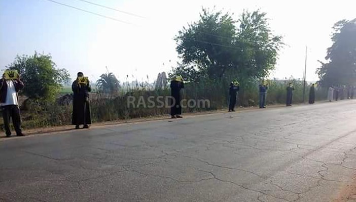 نظم أهالي العجوزين بدسوق، سلسلة بشرية على طريق دسوق كفر الشيخ، لوحوا خلالها بشارات رابعة، وحملوا لافتات حملت عبارات مناوئة لداخلية الانقلاب.