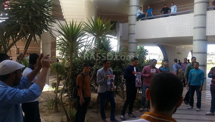 أيضا نظمت طلاب ضد الانقلاب بالمعهد التكنولوجي العالي بالعاشر من رمضان وقفة داخل مبنى كلية علوم، مطالبة بالإفراج عن زملائهم.