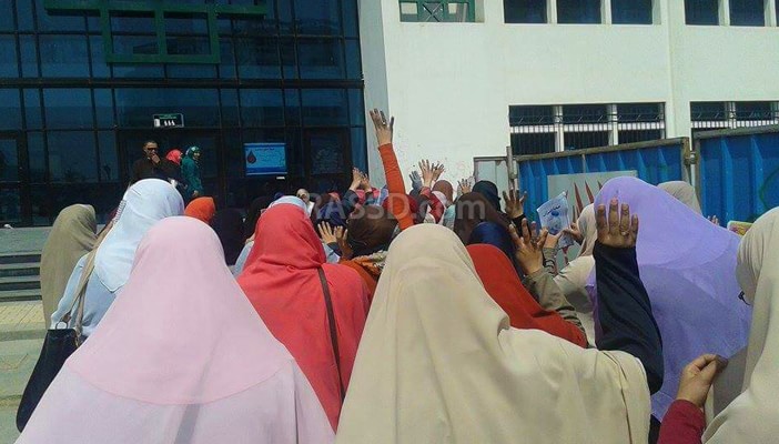 من جانبه حاول أفراد أمن الجامعة، إخراج الطالبات المتظاهرات بالقوة من داخل المبنى، وتعرضوا لهن بالسباب، إلا أن الطالبات أكملن فعاليتهن.