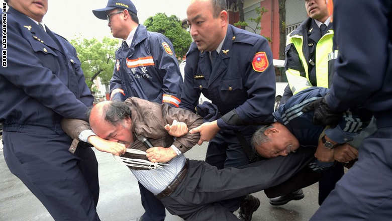 8. الشرطة التايوانية تسحب ناشطين مطالبين بالاستقلال من البرلمان خلال مظاهرة هذا الأسبوع.