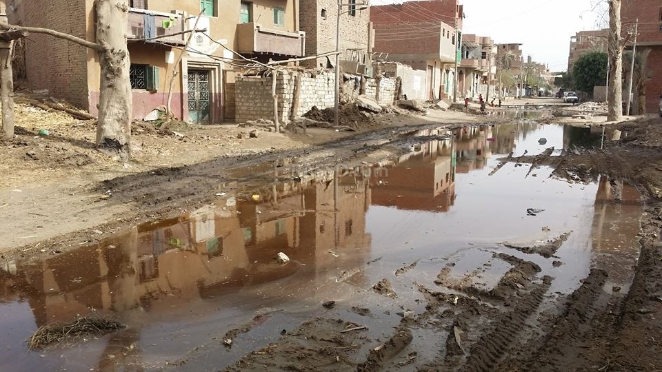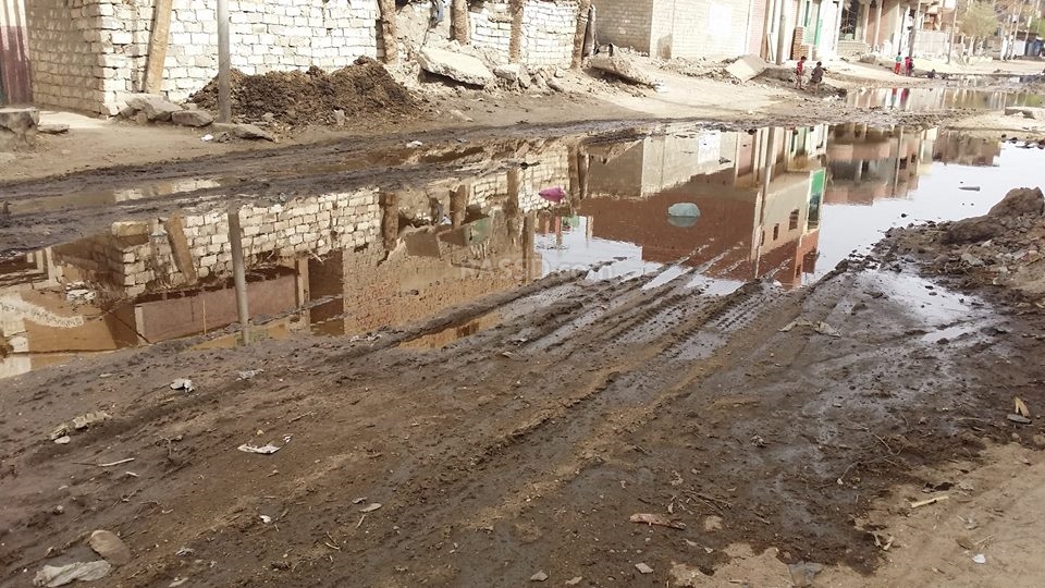 بالصور.. قرية الإعلام بالفيوم في شلل تام بعد انفجار ماسورة صرف