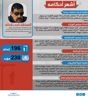 “رصد” وثقت أشهر أحكام “قاضي الإعدامات” بالإنفوجرافيك، كالتالي: