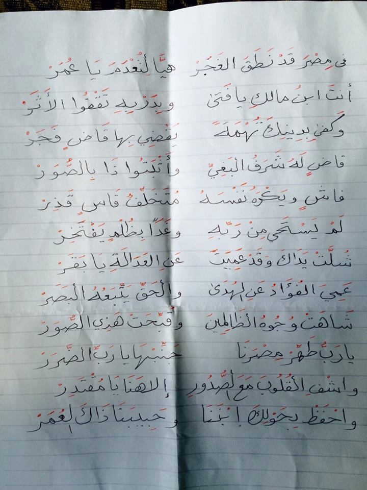 انتشرت قصيدة عن عمر مالك، الصادر بحقه حكم بالإعدام في قضية "غرفة عمليات رابعة"