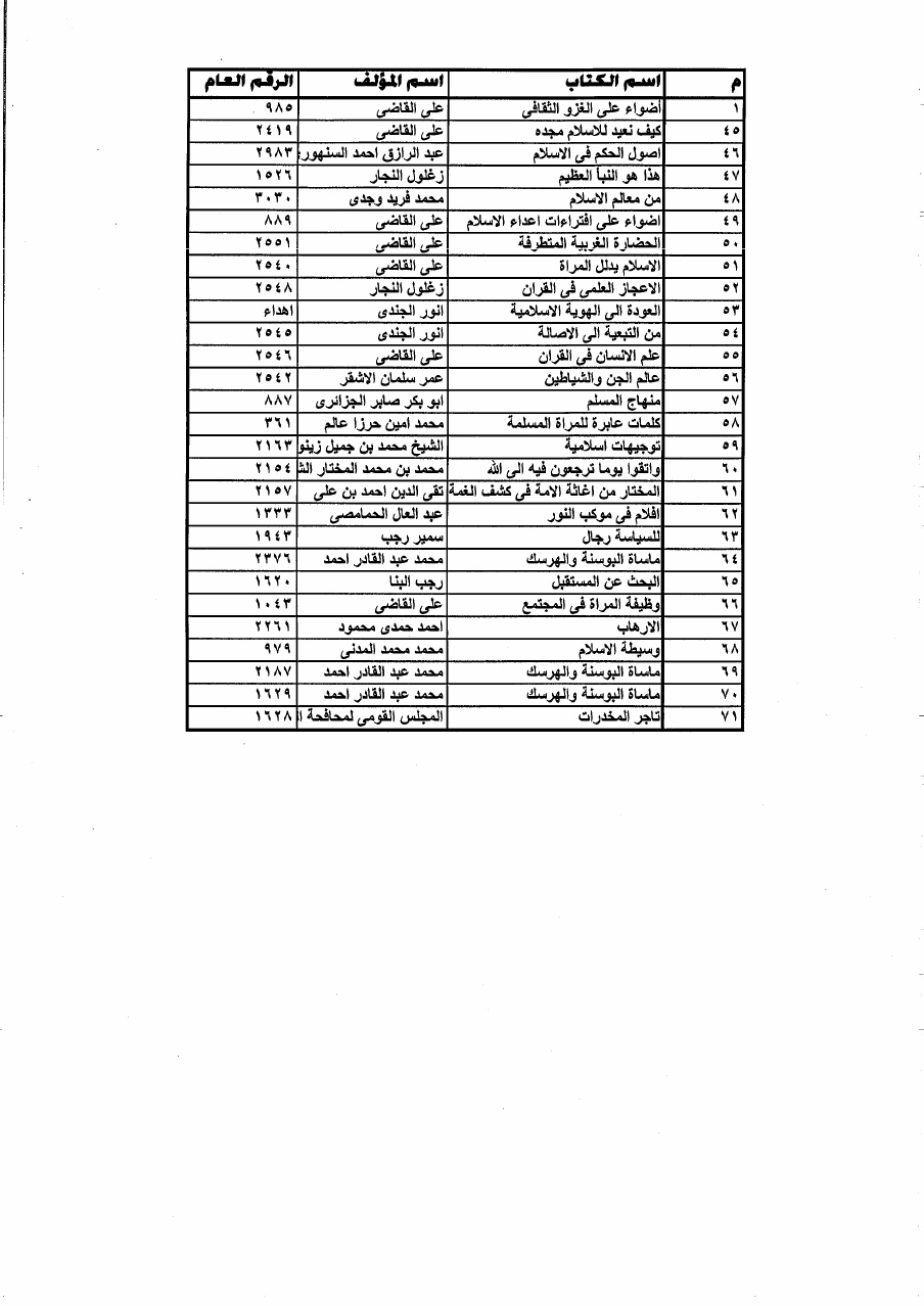 أعلنت وزارة التربية والتعليم بحكومة إبراهيم محلب، أسماء الكتب التي أحرقتها في فناء مدرسة فضل الحديثة بالهرم؛ بزعم أنها تحرض على العنف والإرهاب.