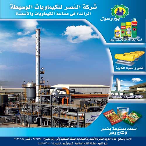 وفي مجال البتروكيماويات والكيماويات الوسيطة، هناك شركة النصر للكيماويات الوسيطة “المنظفات الأسمدة – مكافحات الحشرات”، وشركة العريش للأسمنت وشركة إنتاج المشمعات البلاستيك.