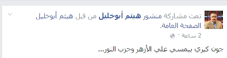 وبسخرية، قال الناشط الحقوقي، هيثم أبو خليل، في منشور له على موقع التواصل الاجتماعي “فيس بوك”- “أخوكم في الله جون كيري ..جاي أعلمكم الإسلام الوسطي الجميل ..!!”، وأضاف”ساخرا”، بعد نشره بعض الصور له “جون كيري بيمسي علي الأزهر وحزب النور.”