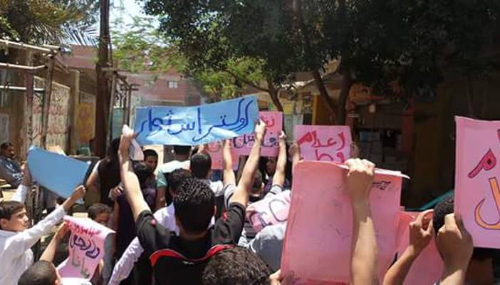 وانطلقت فعاليات البحيرة قبيل صلاة العصر من أمام مسجد “عمر بن الخطاب” بالسناهره وجابت العديد من الشوارع للمطالبه بالقصاص لدماء الشهيد “عبدالعزيز محمد”.