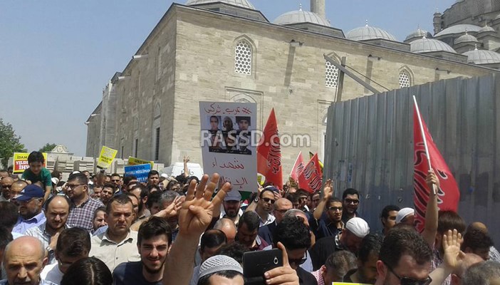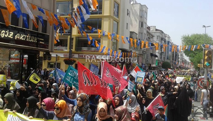 نظمت الجمعيات والمنظمات التركية، اليوم الأحد، مسيرة انطلقت من مسجد الفاتح حتى ميدان الاطفائية، بمشاركة الجالية المصرية، في فاعلية حاشدة غير مسبوقة، تنديدا بأحكام الإعدام الصادرة بحق الرئيس محمد مرسى وآخرين.