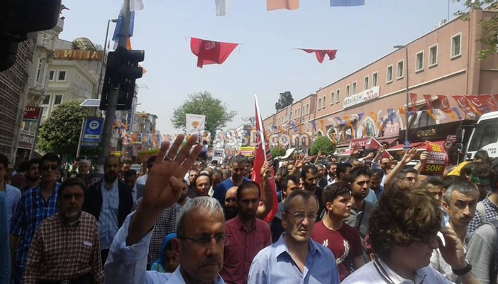 نظمت الجمعيات والمنظمات التركية، اليوم الأحد، مسيرة انطلقت من مسجد الفاتح حتى ميدان الاطفائية، بمشاركة الجالية المصرية، في فاعلية حاشدة غير مسبوقة، تنديدا بأحكام الإعدام الصادرة بحق الرئيس محمد  مرسى وآخرين.