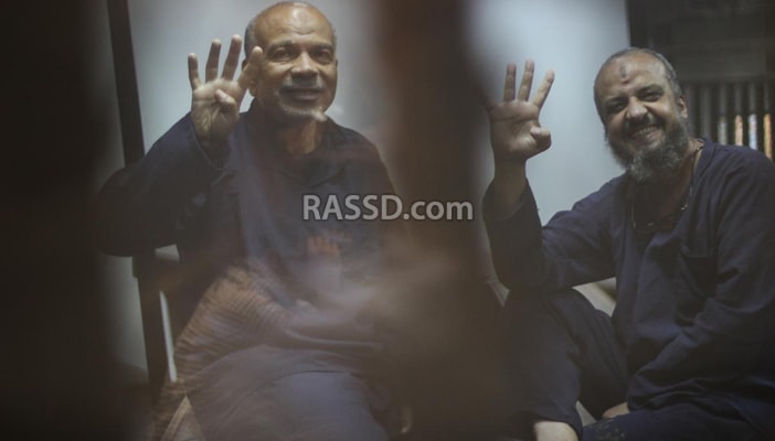 وفي صورة أخرى،ظهر كل من محمد البلتاجي، وسعد الكتاتني،رئيس مجلس السعب السابق،وهما برفعان شارة رابعة، في ابتسامة عريضة تعلو ثناياهما.