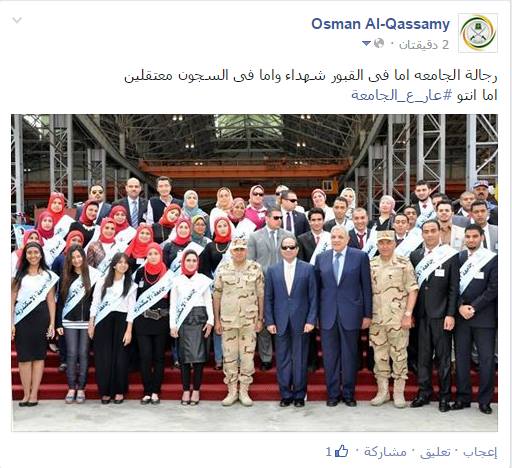 طلاب الاسكندرية يردون على اجتماع السيسى ببعض الطلاب بــ#‏عار_ع_الجامعة